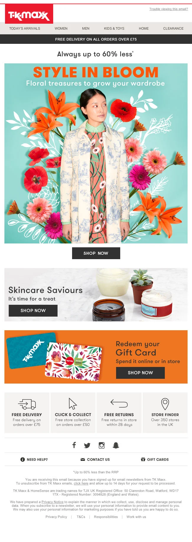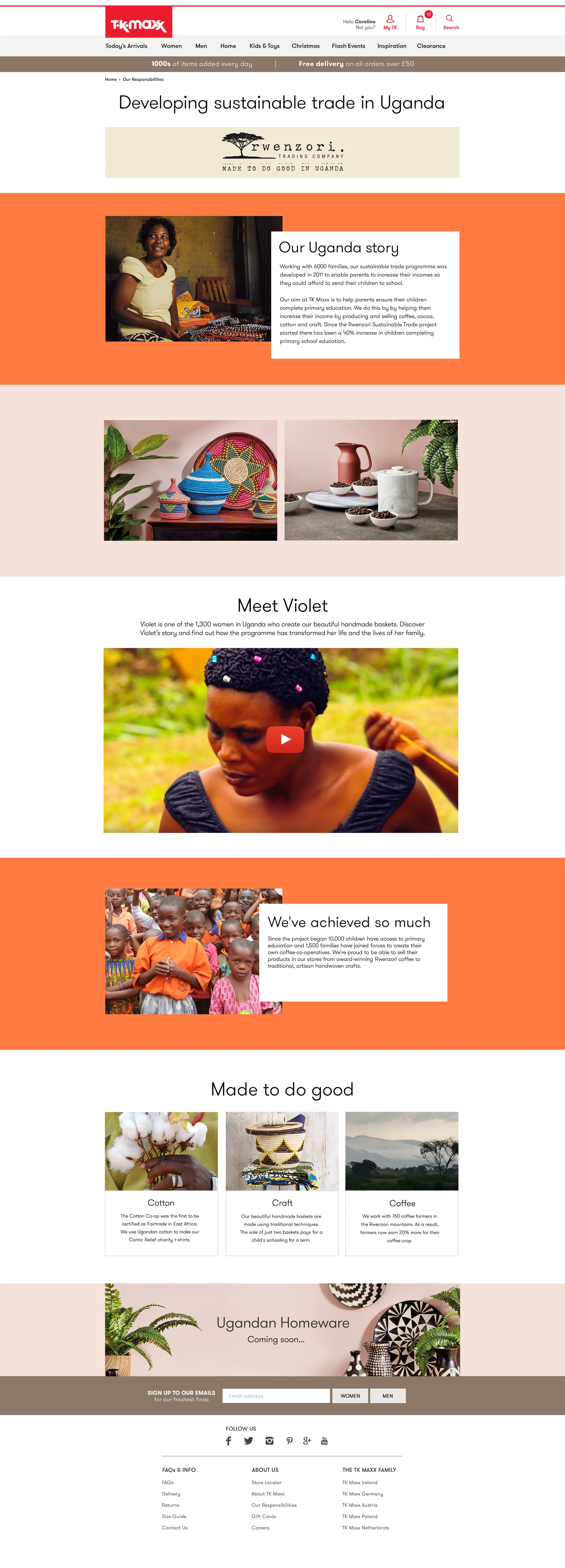 During my work with TK Maxx in 2014 and 2018, I developed homepage and product landing pages, CRM campaigns, radio scripts, and creative copy, helping bring the brand’s accessible yet aspirational energy and customer-first focus to life across multiple platforms.